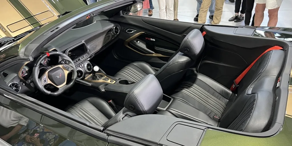 Anyone who’s driven or been inside the recent Camaro will find the Chevelle’s cabin quite familiar. The interior of the new 70/SS Chevelle Super Sport sees minimal changes from the 2024 Camaro cabin. However, Trans Am Worldwide (TAW) adds its special touch with custom interior trimmings. This creates a unique ambiance reminiscent of the classic 70s Chevelle. Step inside to find retro leather upholstery and headrests adorned with “70/SS” embroidery. The steering wheel boasts a custom design featuring an embedded “70/SS,” adding a personalized touch.